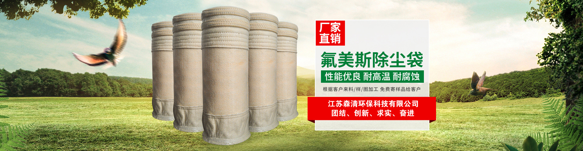 江蘇森清環(huán)?萍加邢薰疚挥谔K北平原、黃海之濱的江蘇省阜寧經(jīng)濟(jì)開發(fā)區(qū)濾料產(chǎn)業(yè)園,東臨沿海高速、西臨新長(zhǎng)鐵路、北枕連云港口、南際鹽城機(jī)場(chǎng),204國(guó)道繞廠而過。依托省級(jí)經(jīng)濟(jì)開發(fā)區(qū)的優(yōu)勢(shì),以科技創(chuàng)新為先導(dǎo)、現(xiàn)代管理為基礎(chǔ),企業(yè)發(fā)展蒸蒸日上。 公司主營(yíng)無堿、中堿玻纖濾袋,PTFE浸漬膨體覆膜(水泥廠窯頭,窯尾專用),無紡高溫、中溫、常溫針刺氈濾袋,濾袋配件等,具有完備的專業(yè)安裝和售后服務(wù)體系!...